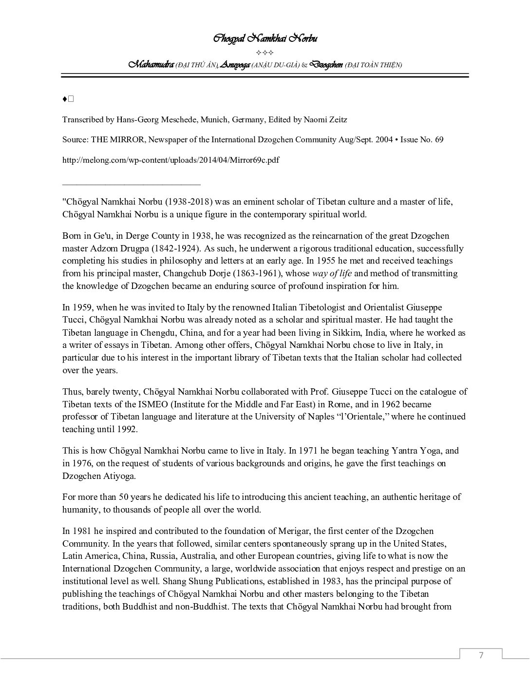 & Dzogchen (ĐẠI TOÀN THIỆN)